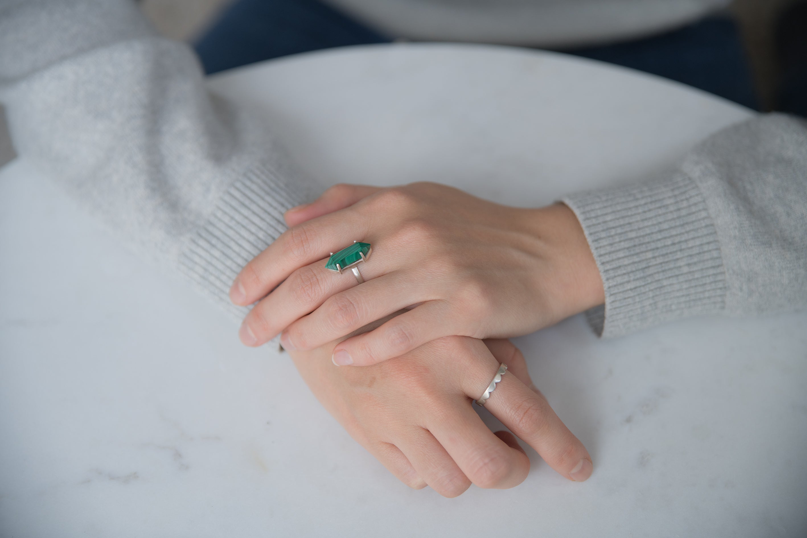 Unsere Designs sind bewusst schlicht, da wir selber am liebsten Schmuck anziehen, an dem man sich auch nach Jahren nicht satt sieht. So wie unsere flat rhomb Armreifen, einer unserer Bestseller den wir seit unserer Gründung in 2016 im Programm haben.
