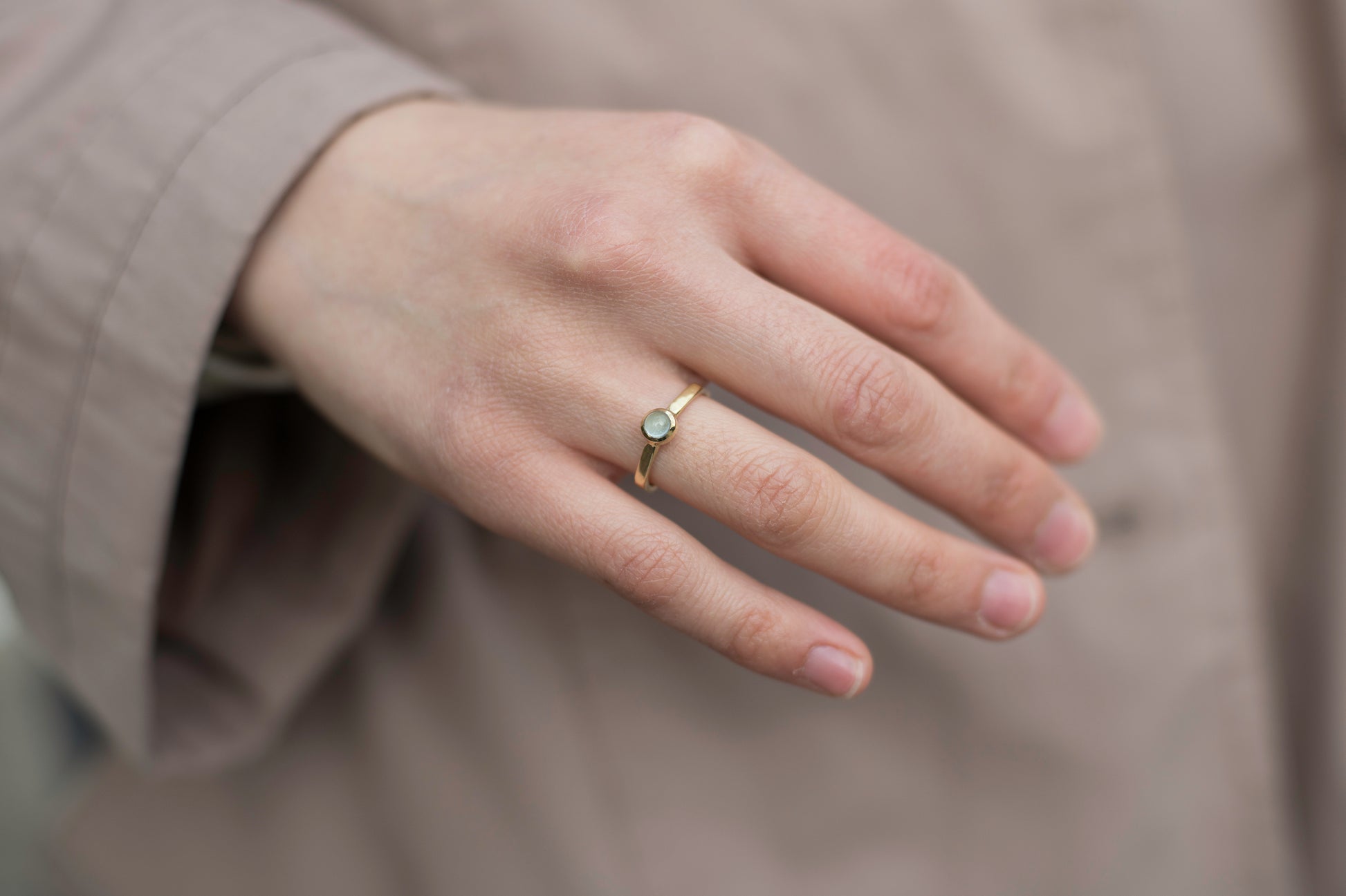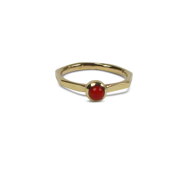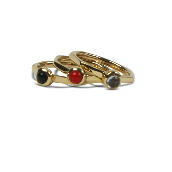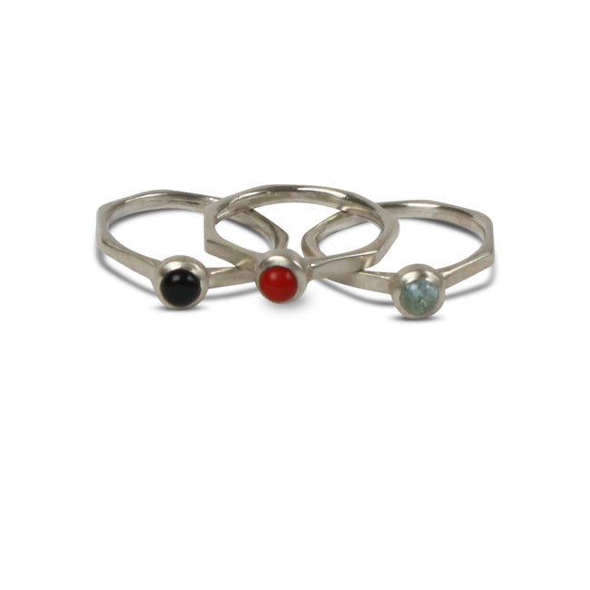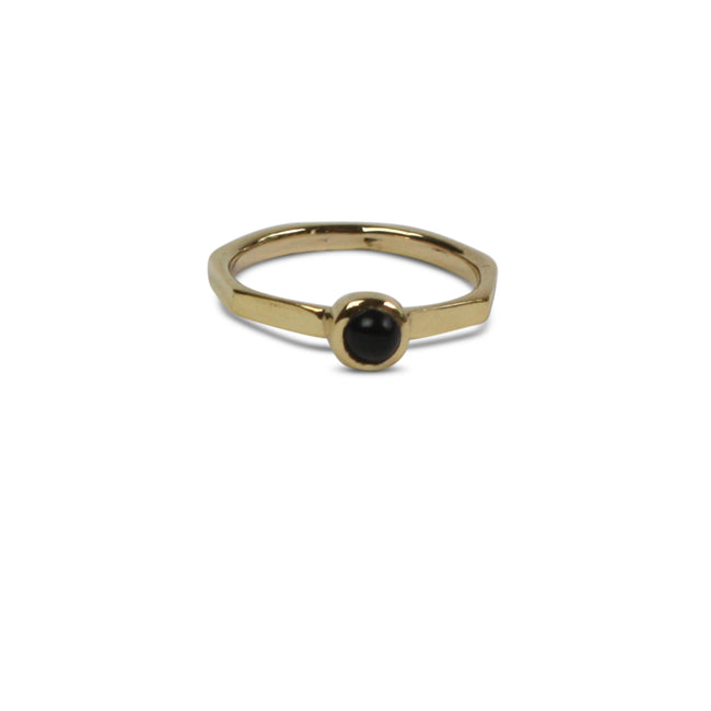 A beautiful ring both by itself or in combination with the simple edges rings in a nice stack! A cabochon cut stone sits on the front of the seven sided edges ring, adding just a little bit of bling to this simple style.