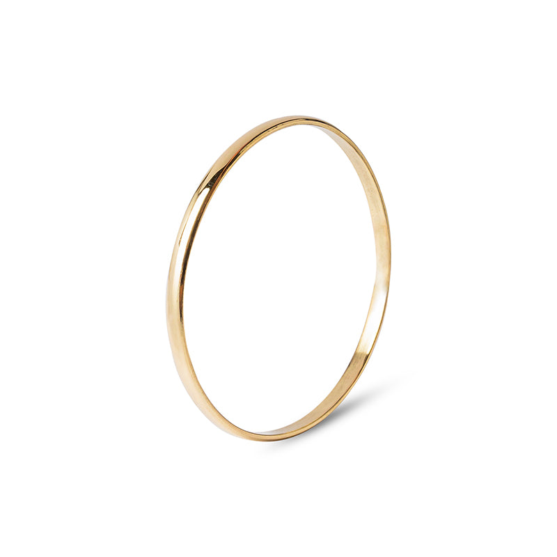 These bangles are the latest addition to this super classic range, rounded on the outside and flat on the inside. They basically always fit with any outfit.