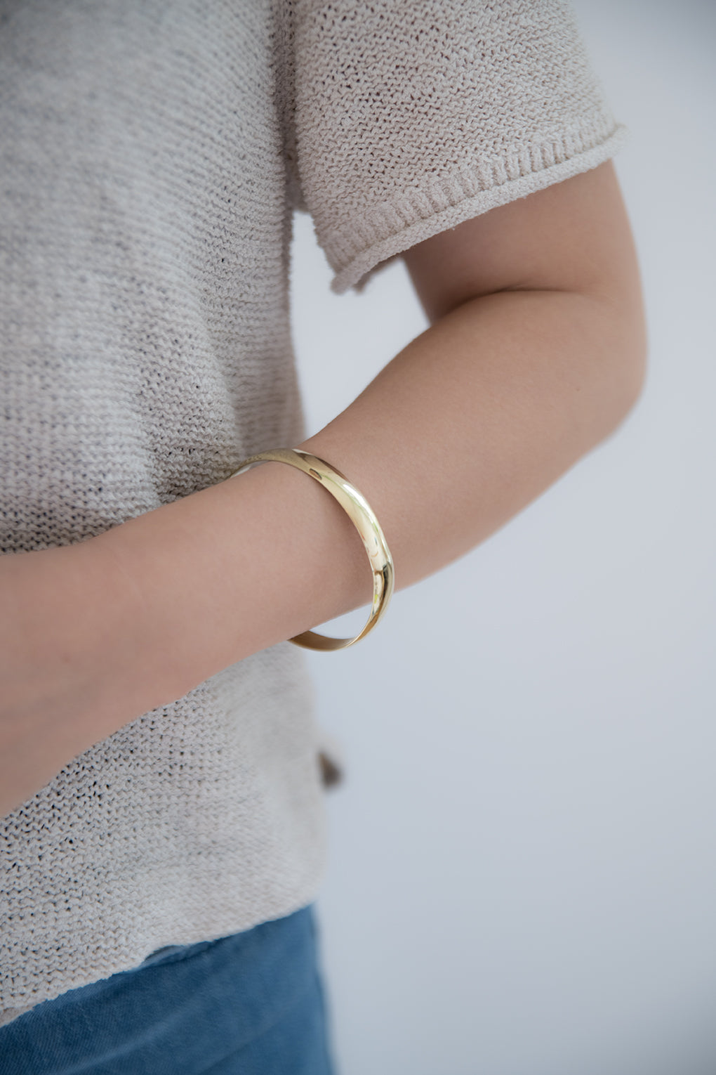 Ein super klassischer Armreif, gerundet an der Außenseite und flach innen in zwei verschiedenen Breiten. Passt quasi immer und zu allem.