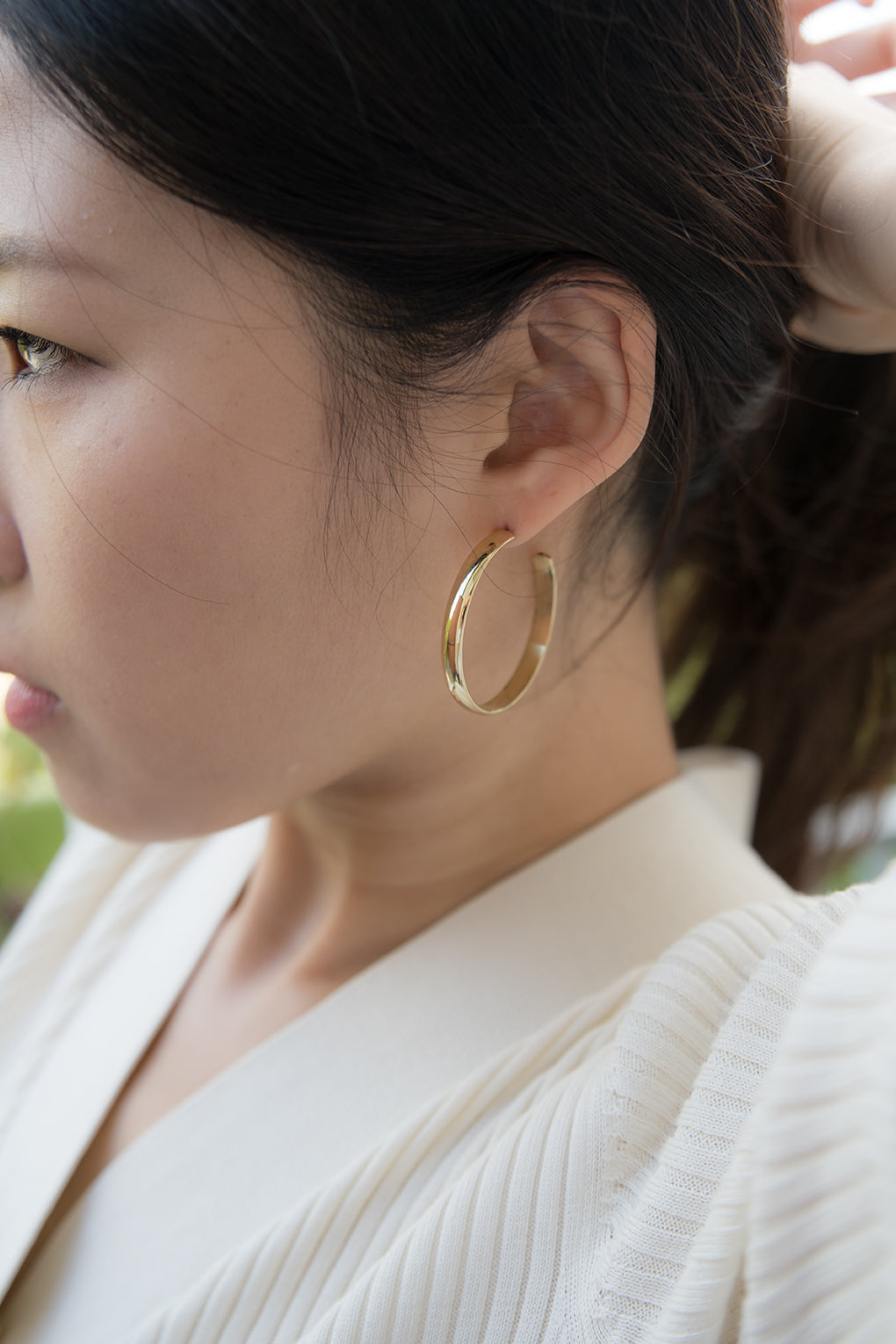 Super classic Hoops, rounded on the outside and flat on the inside. A bit more of a statement, than the smaller version, they basically always fit with any outfit.