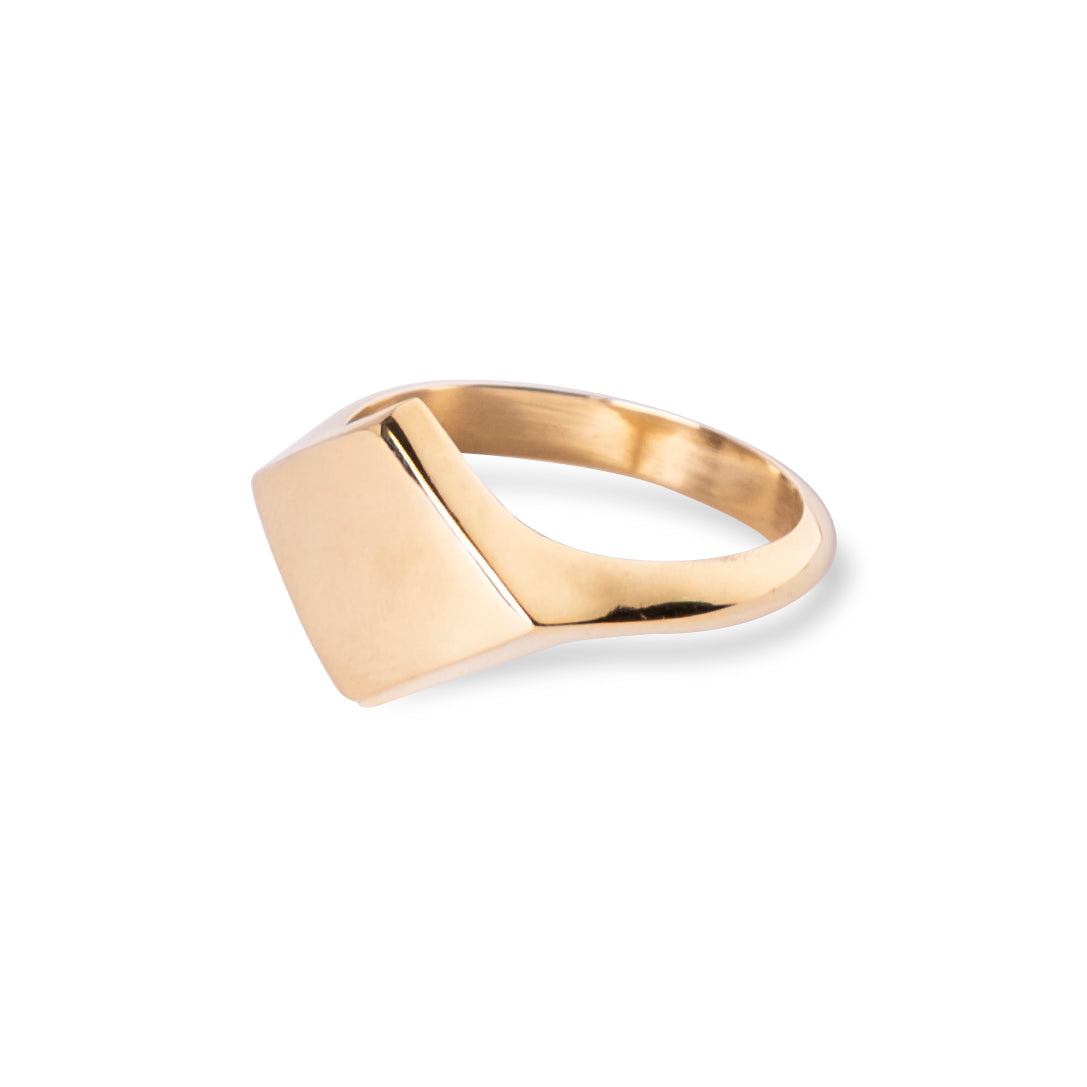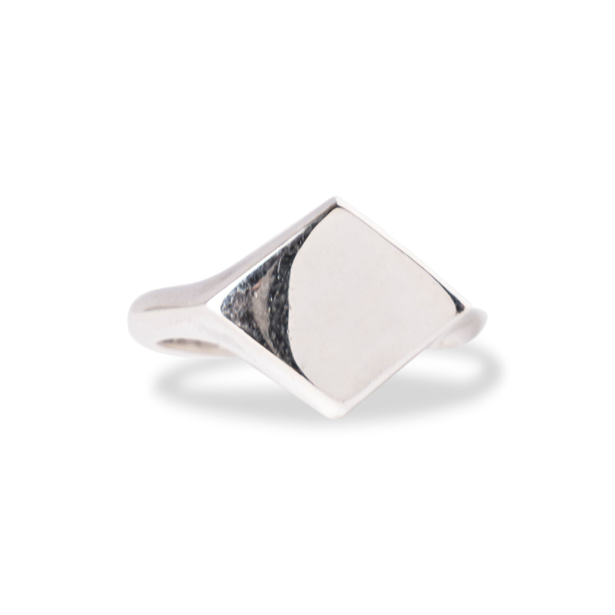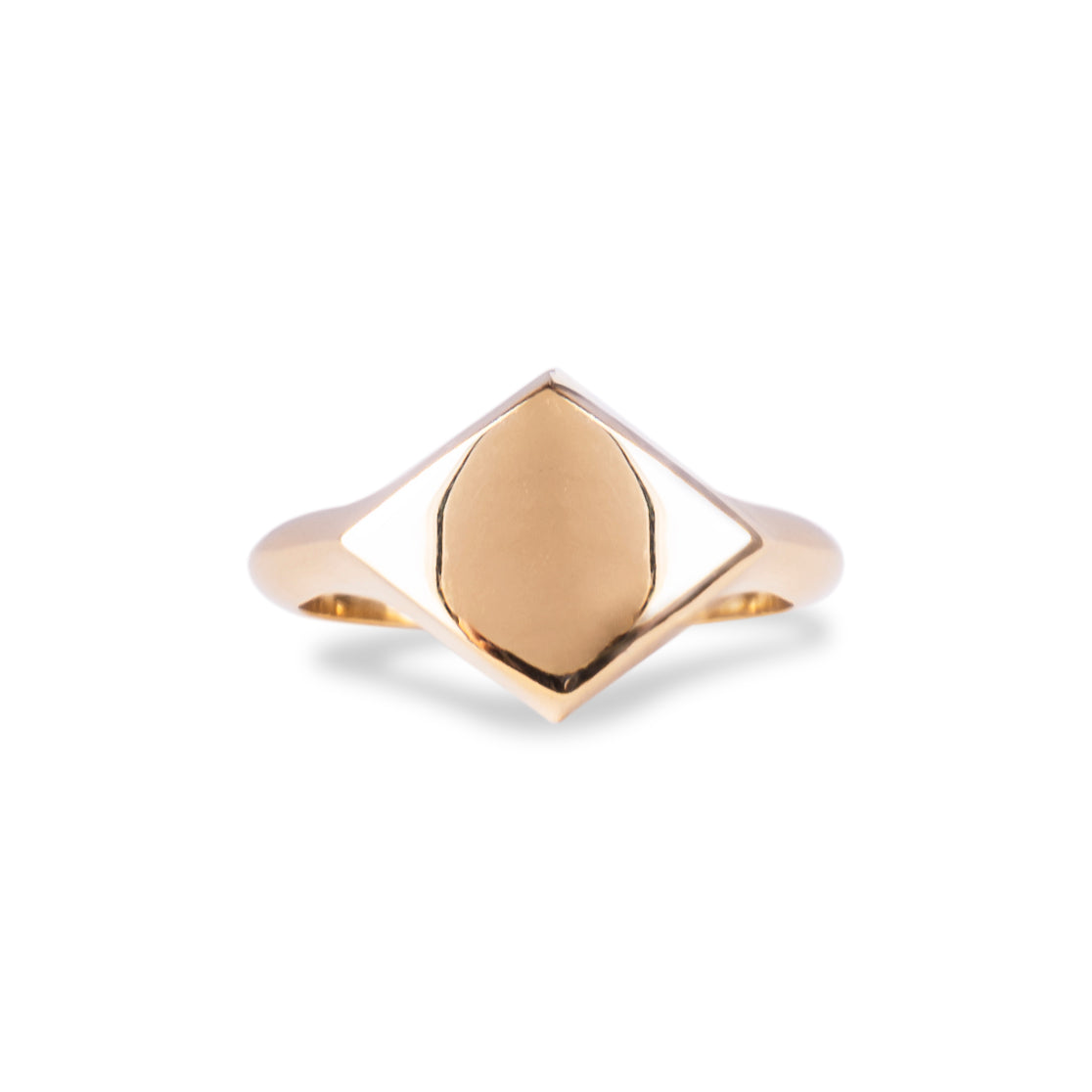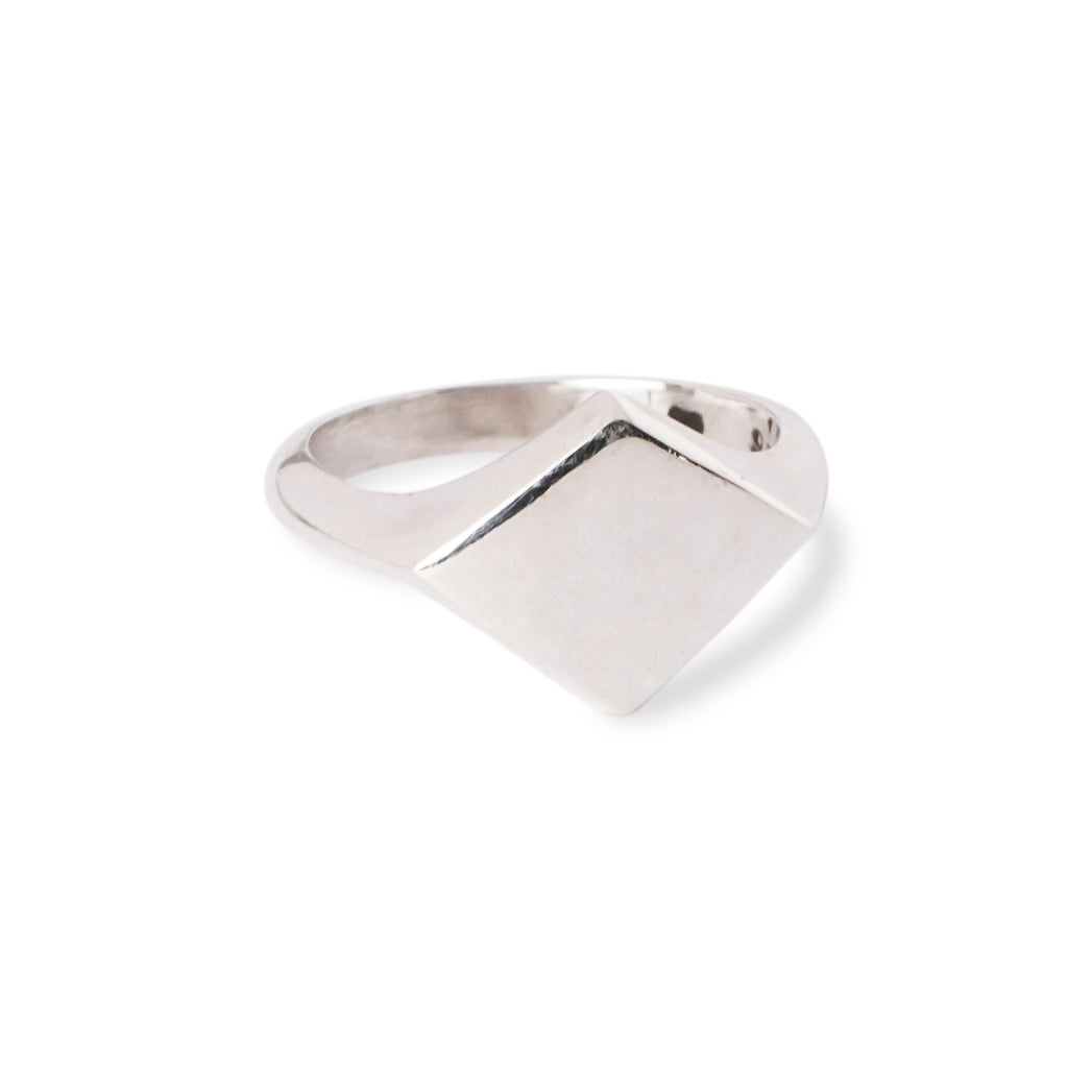 A plain version of the classic signet ring. The diamond-shape looks great all by itself on your finger.