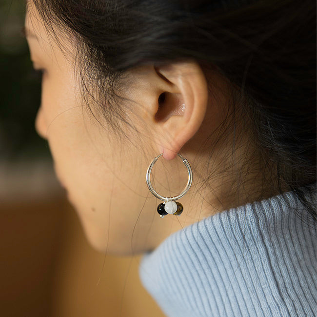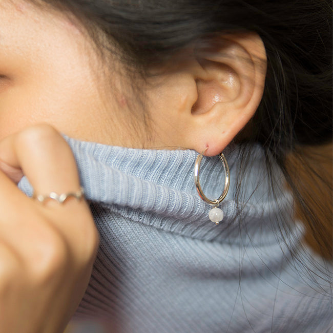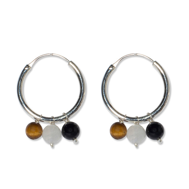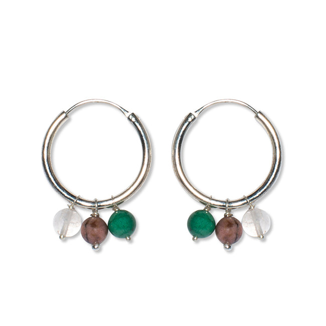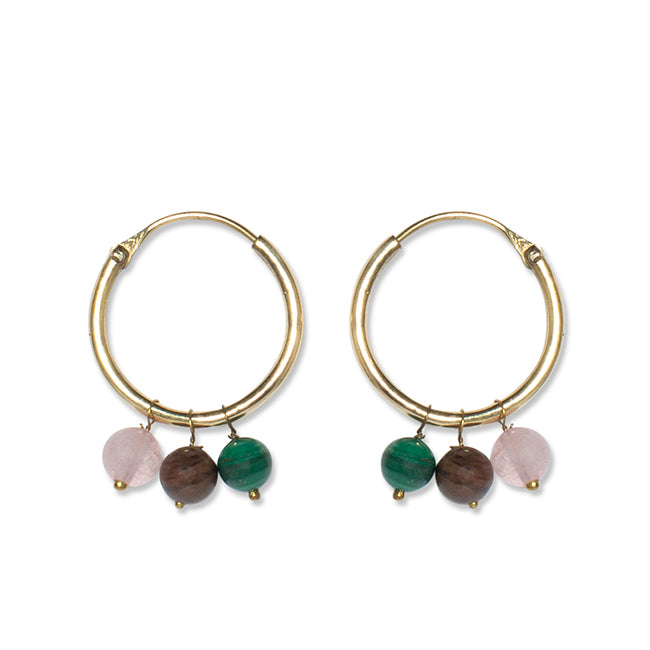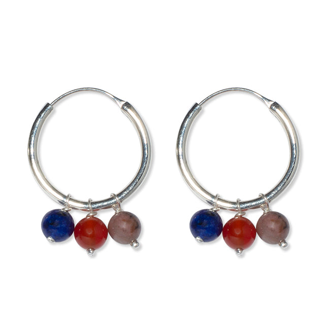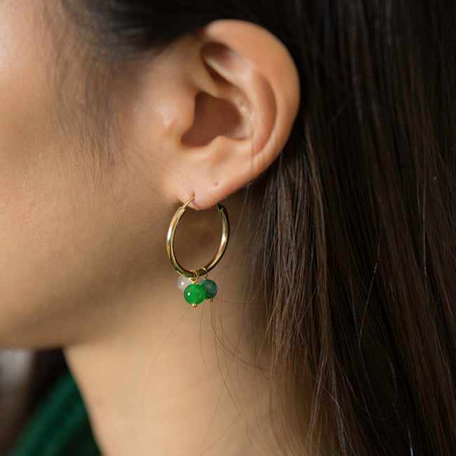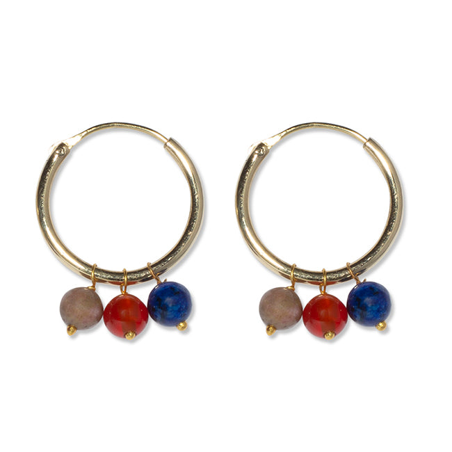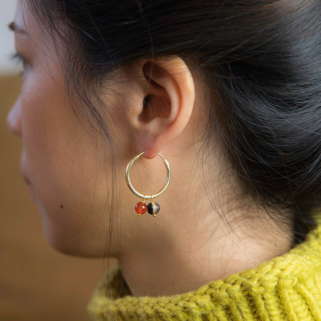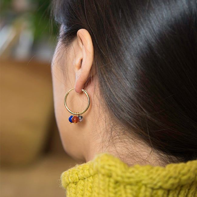 Simple creoles with 3 individual stone beads which can be worn as a set or separately. So whether you are in the mood for a beautiful, vibrant colour combination or an elegant earring earring with just one stone, these beauties have you covered.